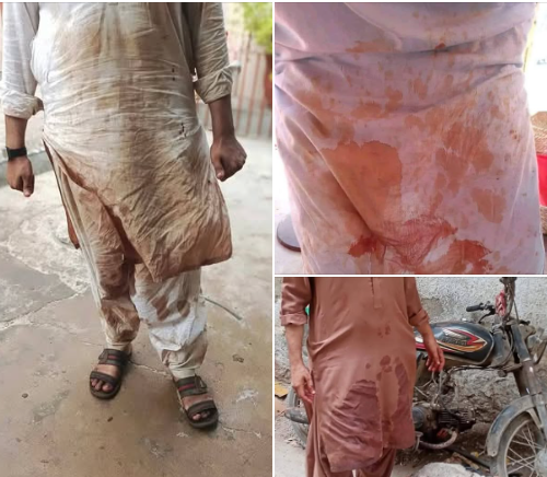 یہ قصائی نہیں بلکہ دینی مدرسے کا طالب علم ہیں جس نے عید کی خوشیاں والدین کے سنگ گزارنے کی بجائے اپنے مادرعلمی کے نام کردئے سال بھر اجھلا چمکدار لباس پہننے والے مہک والی خوشبوئیں لگانے والے طلباء کرام اس دن کھالیں جمع کرتے ہیں اور اپنی یہ حالت کردیتے ہیں