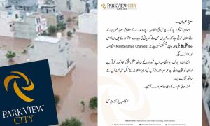 انتظامیہ پارک ویو سٹی کی جانب سے جاری نوٹیفکیشن میں کہا گیا ہے کہ وہ مکین جن کے گھروں کو پانی لگنے سے نقصان پہنچا ہے، ان کے لیے یہ رعایت فوری طور پر نافذ العمل ہوگی۔