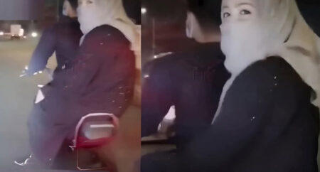اس تصویر میں جو عورت باٸیک کے پیچھے بیٹھی ہے وہ پیچھے کی جانب بڑی پیار بھری نظروں سے دیکھ رہی ہے واضح ثابت ہو